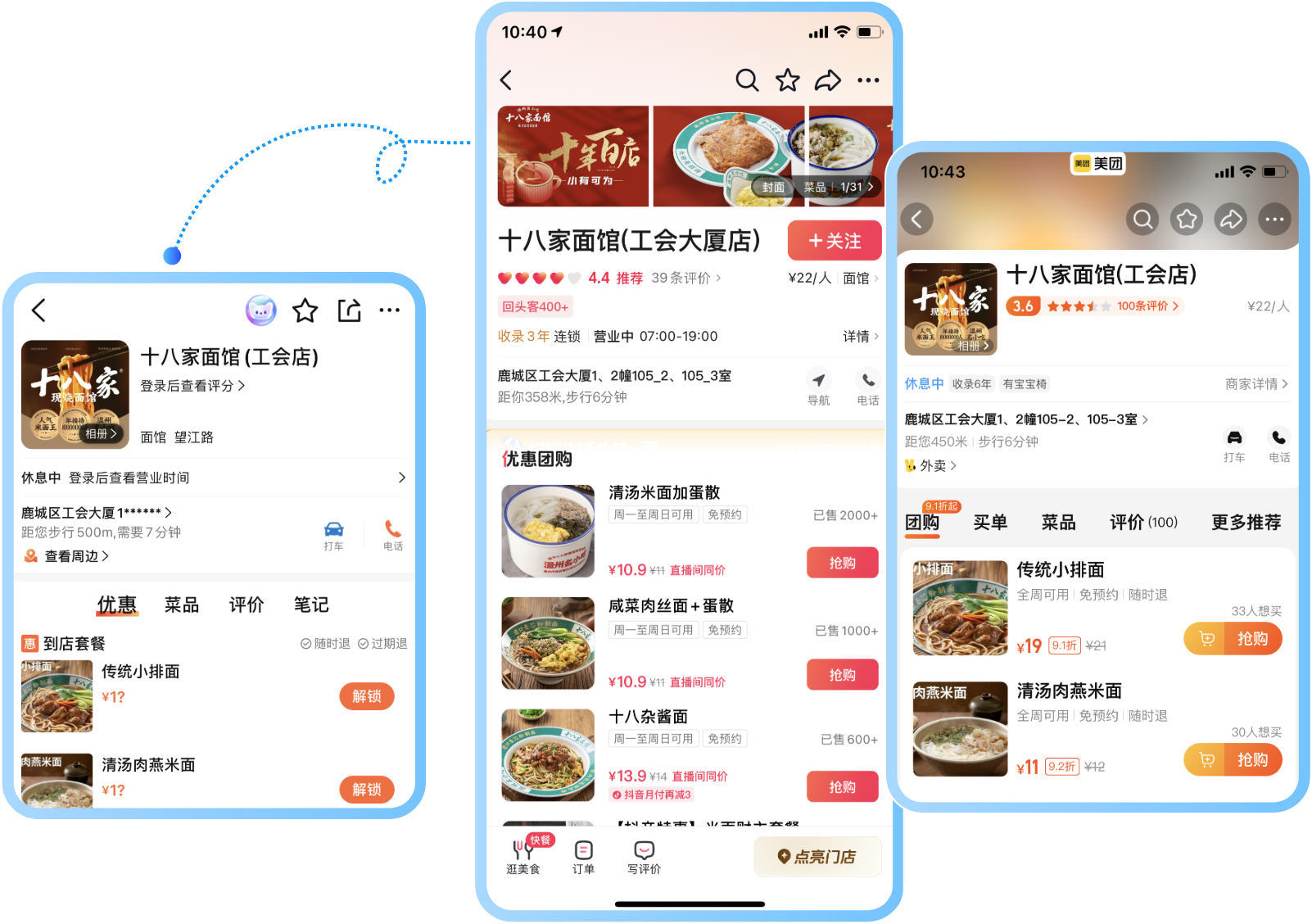 一站锁定:无需跳转多平台比价,直接进入抖音、美团、大众点评的门店团购页,便捷体验帮商家留住更多意向客户。
